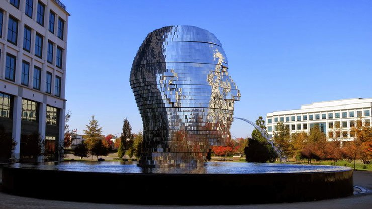 Це – дзеркальний фонтан, розроблений чеським скульптором Девідом Черні. Він встановлений в парку Уайтхолл в Шарлотті, Північна Кароліна. 14-ти тонна скульптура, виконана з масивних шарів із нержавіючої сталі, які обертаються на 360 градусів, іноді вирівнюються, утворюючи величезну голову.