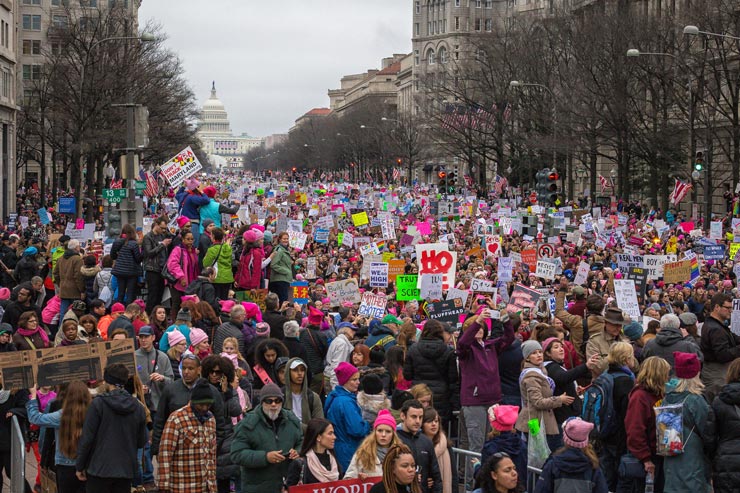 Мирні протести розпочалися 21 січня у столиці США, Вашингтоні, де на «Марш жінок» вийшло близько півмільйона людей. Партнерами маршу стали понад 200 організацій, серед них: National Organization for Women, Human Rights Watch, Planned Parenthood, повідомляє The New York Times. Ходу підтримали політики, акторки й співачки, зокрема, співачки Мадонна й Шер, акторка Скарлетт Йоханссон й інші. На знак солідарності з жінками США й на захист прав жінок на марші вийшли люди в усьому світі: у Канаді, ЄС, Аргентині, ПАР, Сінгапурі, Австралії, Японії. У Європі марші не відбулися в Україні, Білорусі, Молдові й Румунії.