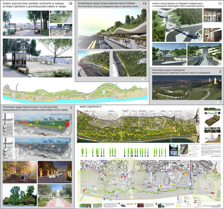 У червні 2017 року в столиці презентували Концепцію розвитку інфраструктури прибережних зон. Серед запропонованих проектів: 75-метровий флагшток біля монументу Батьківщина-Мати, канатна дорога на Труханів острів, пішохідний міст від монумента «Арка дружби народів» до парку Володимирська гірка, автопаркінг біля Пішохідного мосту, оглядовий майданчик через Паркову дорогу та Меморіальний комплекс пам’яті жертв Голодомору тощо – всього 16 проектів. Дев’ять з цих 16 проектів запропоновано ТОВ «Проектні системи ЛТД» Андрія Миргородського. Це можна помітити за логотипом компанії у правому нижньому кутку деяких планшетів.