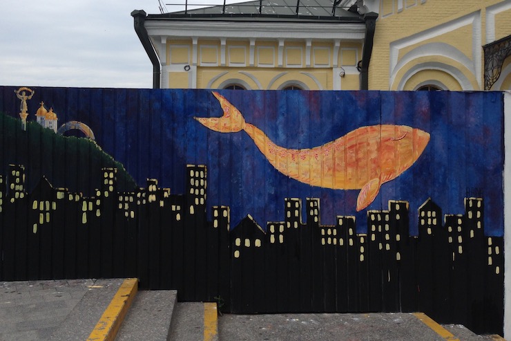 Під час акції «Тисячолітня історія України в ста метрах» художники розмалювали будівельний паркан на Поштовій площі.