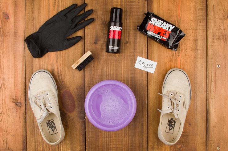Найпростіший варіант – користуватися спеціальним миючим засобом та щіткою. Нанести засіб на взуття та швидкими рухами з короткою амплітудою втирати його в забруднені місця. Після чого змити піну сухою ганчіркою. Інший варіант: замість засобу використовувати розчин з теплої води та мила, який можна приготувати власноруч.