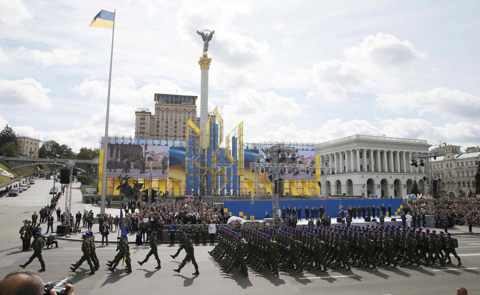 • після проведення військового параду за маршрутом: Європейська площа – Петровська алея – Паркова дорога – Дніпровський узвіз – Набережне шосе – вул. Набережно-Хрещатицька – вул. Нижній Вал – Глибочицький проїзд – вул. В. Чорновола – просп. Перемоги – вул. Академіка Туполєва – аеродром «Святошин».