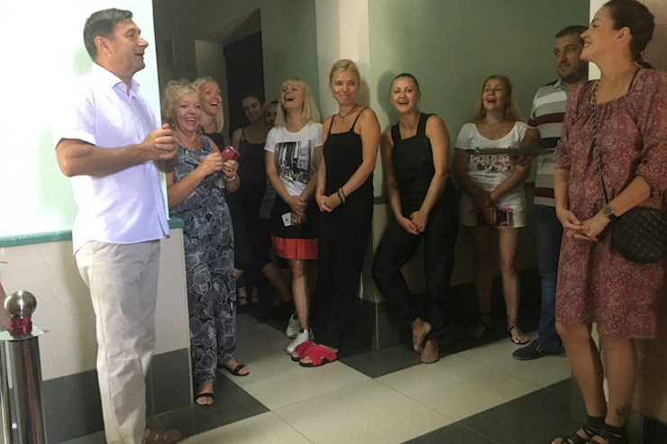 Урочисте відкриття туалету в Херсонському драмтеатрі. Фото: khersonci.com.ua