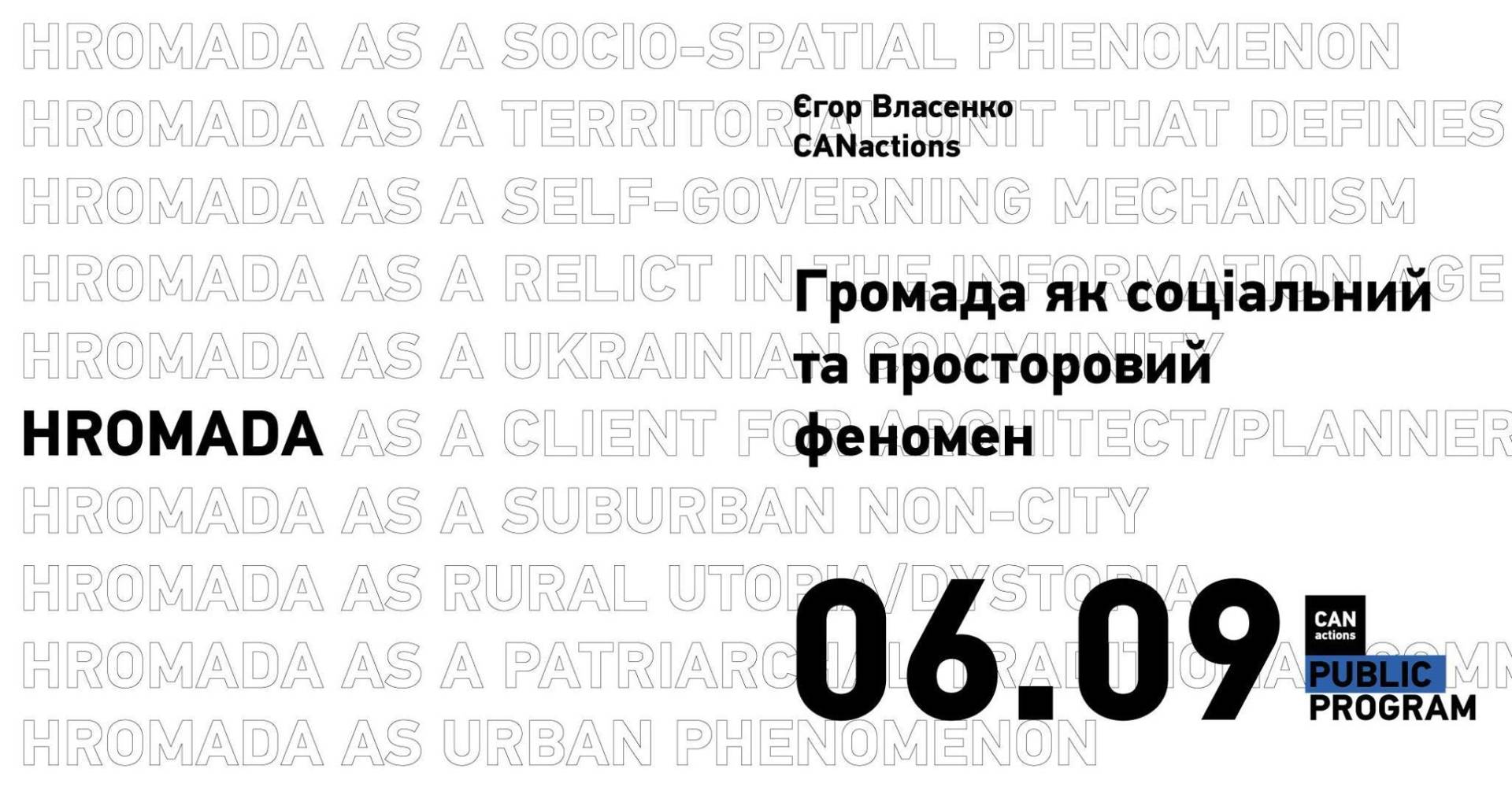 6 вересня відбудеться лекція Єгора Власенка «Громада як соціальний та просторовий феномен».