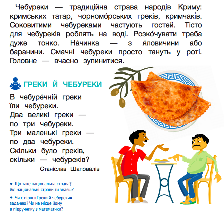 В підручниках згадані греки, що куштують чебуреки, тато, що ліпить вареники та мама з татуюванням.