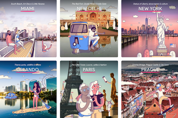 Наразі на сайті Touring Bird доступно 20 міст, переважно Північної Америки та Європи: зокрема, Амстердам, Барселона, Берлін, Лондон, Мадрид, Париж, Прага і Рим. З азійських міст є лише Нью-Делі. Утім, розробники додаватимуть інші локації мірою готовності.