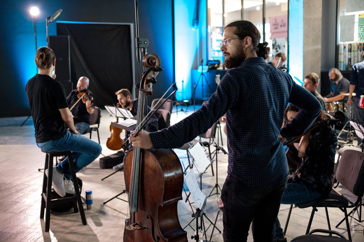 Композитор, співзасновник арт-клубу КОRA, керівник і диригент єдиного в країні Українського Імпровізаційного Оркестру Дмитро Радзецький представив експериментальну музичну студію. Він розповів, що в планах проведення музичних майстер-класів. Український Імпровізаційний Оркестр – масштабний проект, що зібрав відомих українських музикантів, а також корифеїв українського джазу та авангарду.