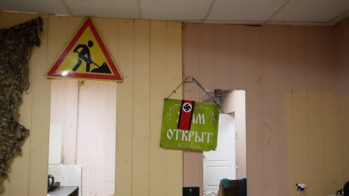 Кореспондент Української правди повідомив, що всередині офісу лежали розкидані паспорти добровольців, зокрема один російський, а на стінах – свастика і портрет Гітлера.