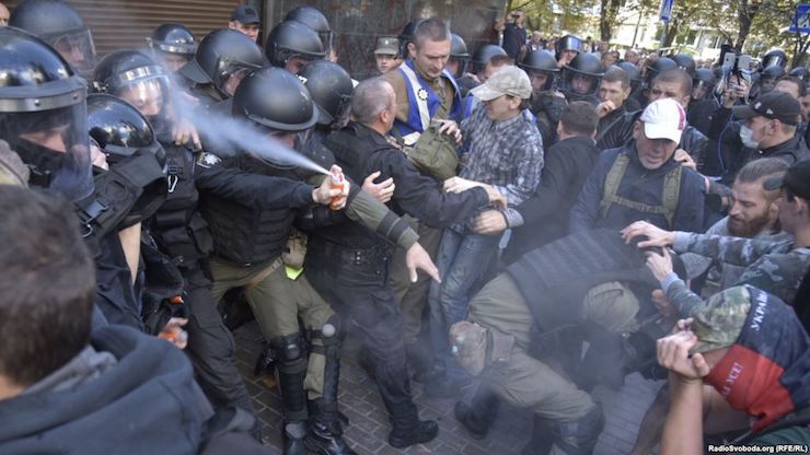Перед цим вранці представники різних націоналістичних організацій влаштували під ГПУ пікет проти екстрадиції в Росію інгуша Тимура Тумгоєва, який воював в АТО і якого розшукувала ФСБ. Пікет переріс у сутички, під час яких постраждали, зокрема, семеро правоохоронців.