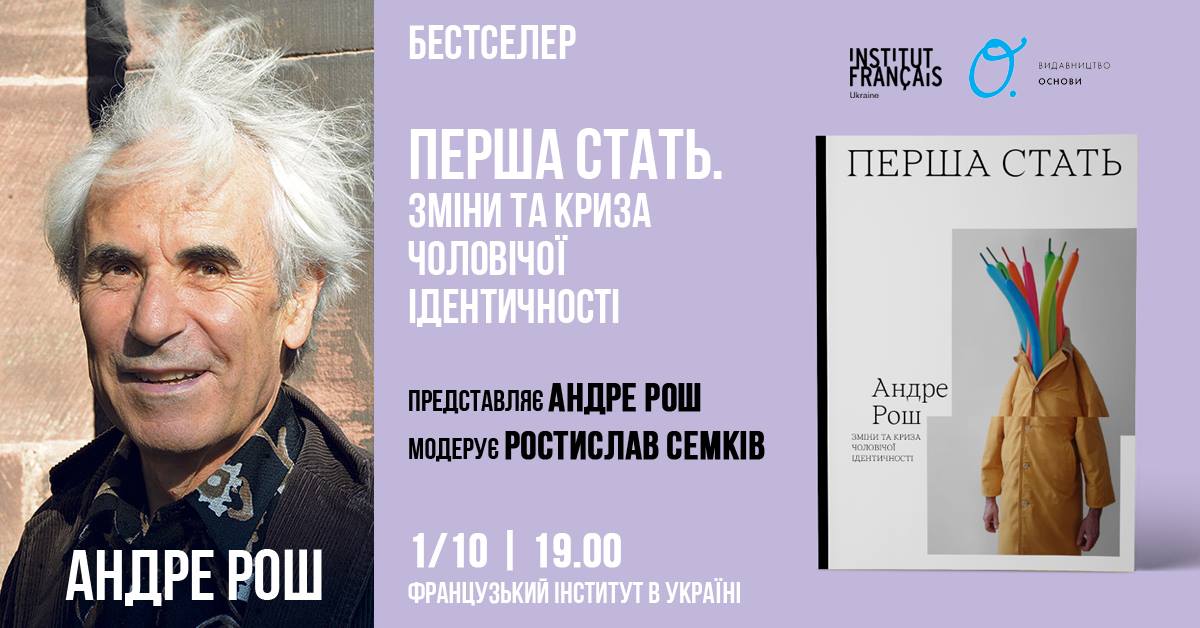 1 жовтня у Французькому інституті в Україні відбудеться презентація французького бестселера історика Андре Роша «Перша стать. Зміни та криза чоловічої ідентичності». Презентувати книгу буде автор.