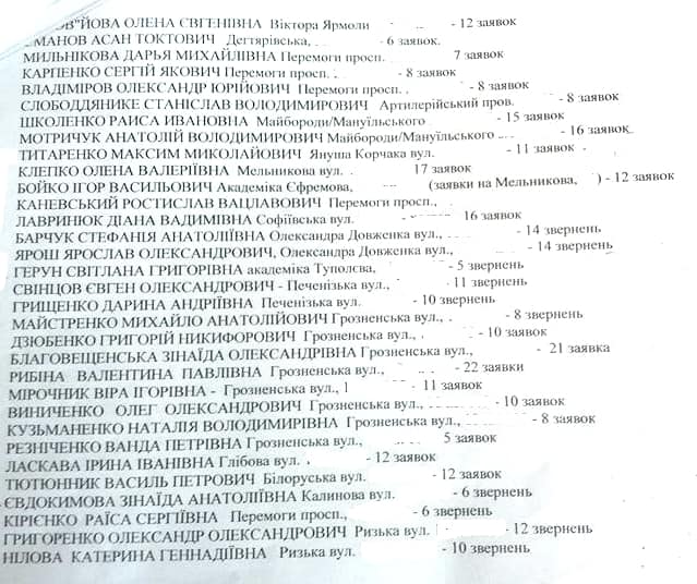 Група киян виявила списки тих, хто часто скаржиться на комунальні служби. За даними викладачки музики Наталії Коптєнкової, списки було розіслано з КМДА в поліклініки.