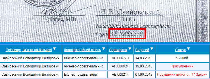 Номер для підробленого експертного сертифіката взято з іншого «не експертного» сертифікату та замінено буквенний індекс.