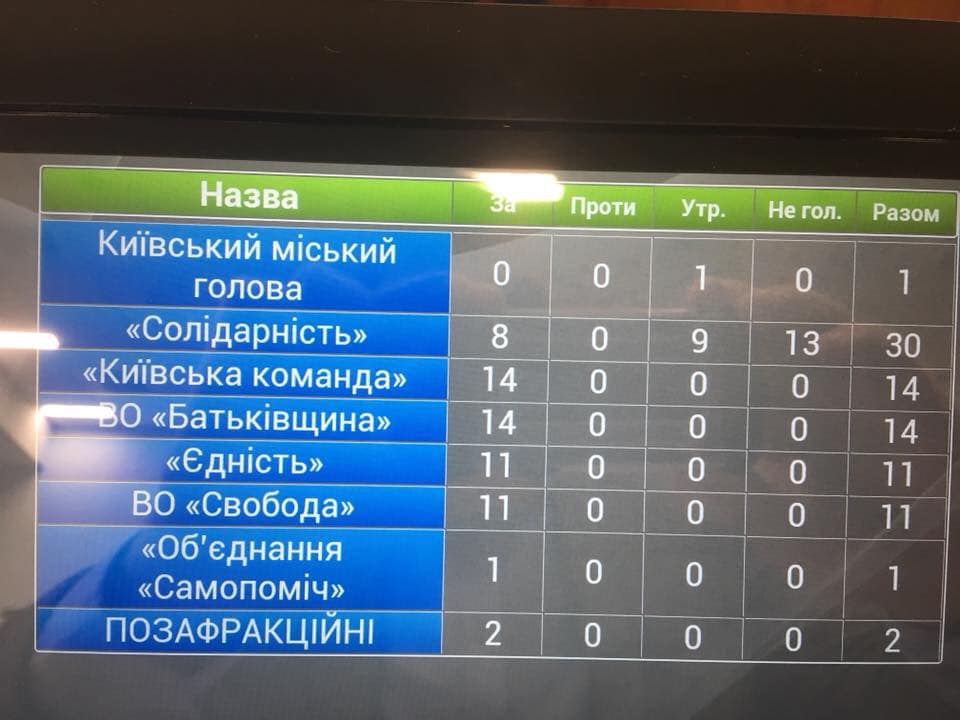 «За» проект рішення проголосував 61 депутат. Київський міський голова Віталій Кличко утримався від голосування, а з 30 депутатів фракції «Солідарність» тільки вісім віддали голос за розірвання договору.