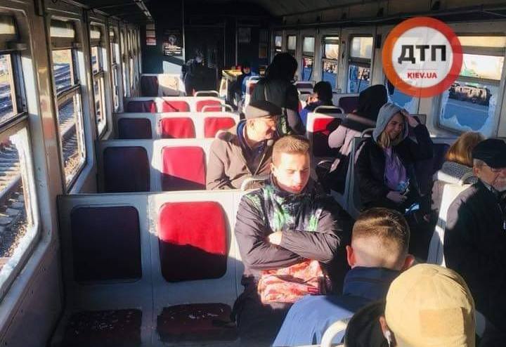 Так, на фото та відео пасажирки Наталія Остапенко, яка їхала вранці на роботу, видно, що у вагоні їдуть люди, деякі сидіть на вкритих розбитих склом сидіннях. Вочевидь, пасажири зайшли до вагону, бо приміські електрички в цьому напрямку їздять із чималим інтервалом і зранку переповнені.