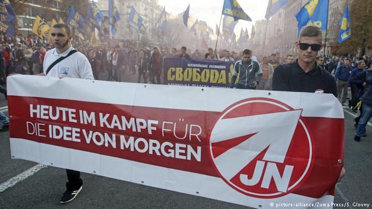 Іноземні фотокореспонденти помітили на марші УПА в Києві, присвяченому Дню захисника України 14 жовтня, членів німецьких неонацистських партій Der Dritte Weg та Junge Nationalisten. Про це повідомляє Deutsche Welle.
