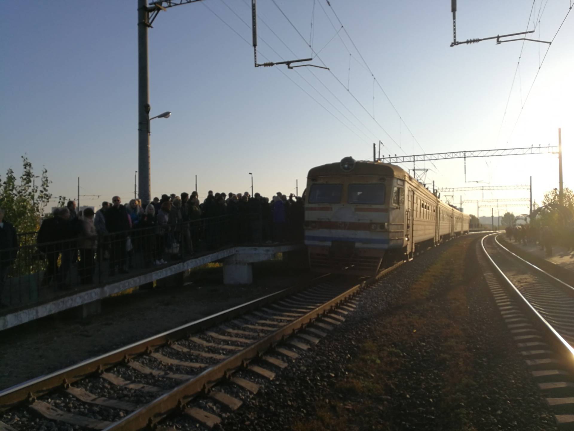 КП «Київпастранс» повідомив, що о 8:15 пасажири заблокували рух міської електрички. Розблокувати її вдалося лише о 9:05.