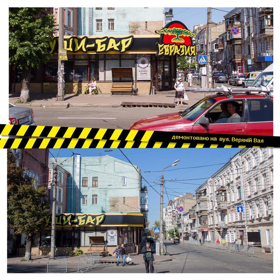 З будинків на Нижньому та Верхньому Валу демонтовано рекламні конструкції (фото)