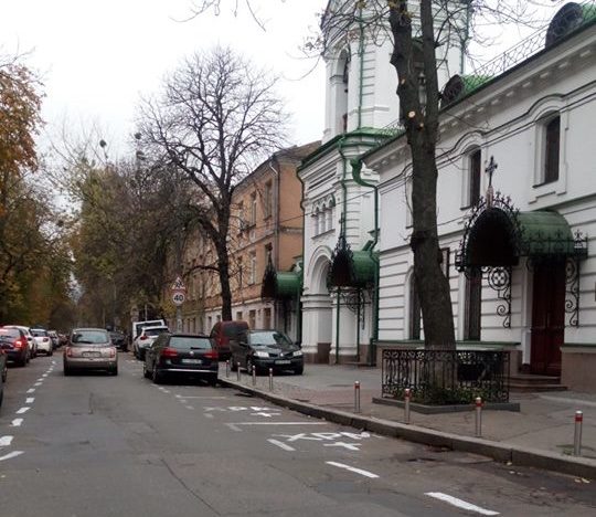 Представники Свято-Веденського монастиря самостійно намалювали собі паркувальні місця на вулиці Рибальській, означивши їх церковними абревіатурами ХРМ (храм) і СК.