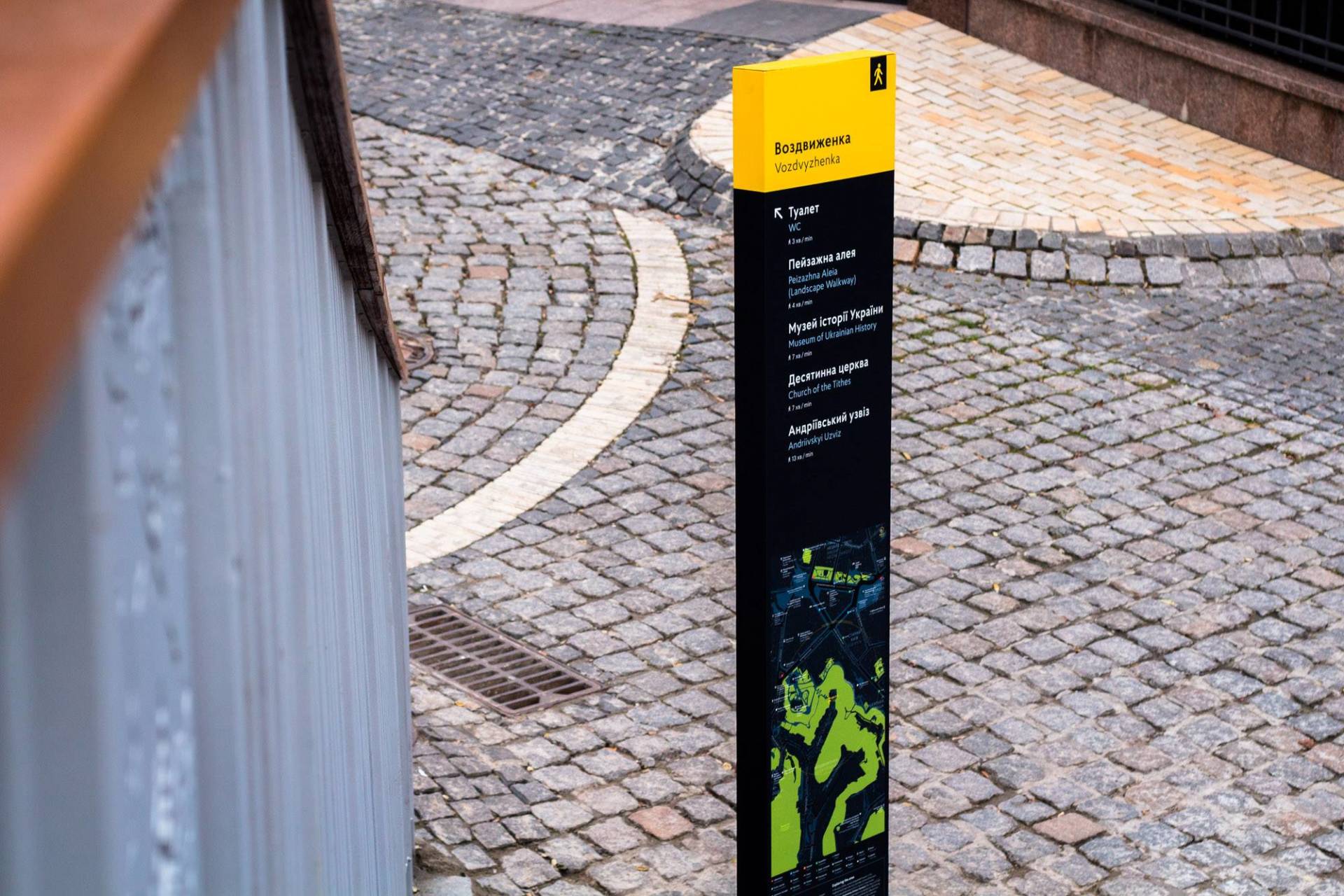 «Агенти змін» зробили і встановили нові навігаційні пілони для центральної частини Києва. Вже минулого тижня їх можна було побачити на Воздвиженці біля сходів на Пейзажну алею.