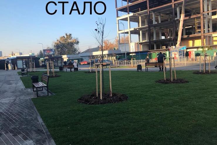 Біля метро «Тараса Шевченка» на місці знесених МАФів облаштували сквер (фото)