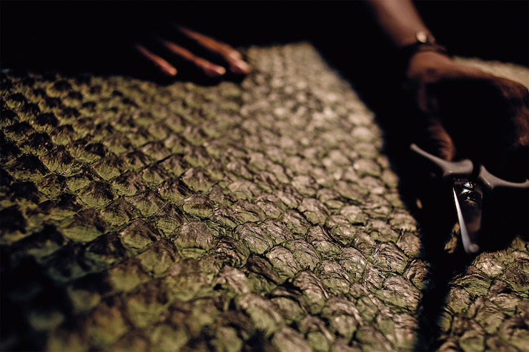 Дизайнер стверджує, що луска апараїми не лише етичніший та екологічніший матеріал, але й більш еластичний, тонкий та м’який у порівнянні з шкірою тварин.