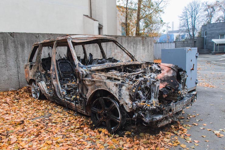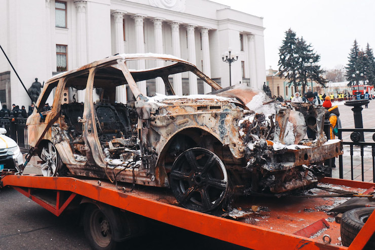 Власники авто на єврономерах привезли під Верховну Раду спалений Range Rover