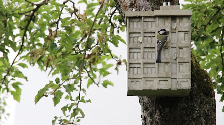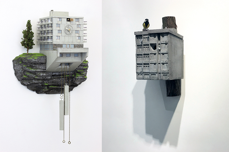 Художник також створив годівниці для птахів у вигляді бруталістських багатоповерхівок.