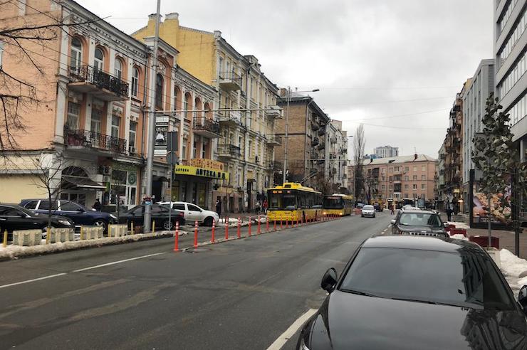 Делінеатори встановили на вулиці Шота Руставелі наприкінці листопада. У КМДА також анонсували облаштування виділених смуг на бульварі Лесі Українки і на бульварі Тараса Шевченка.