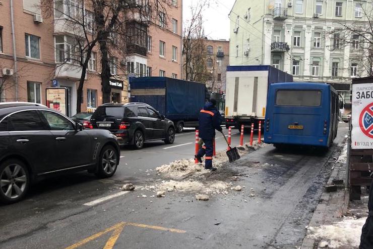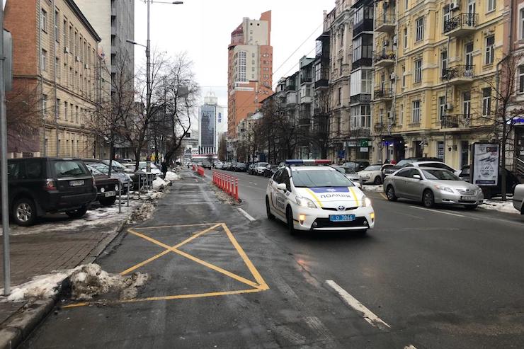 До цього часу перша в Києві виділена делінеаторами смуга громадського транспорту на вулиці Шота Руставелі не функціонувала через запарковані автівки.