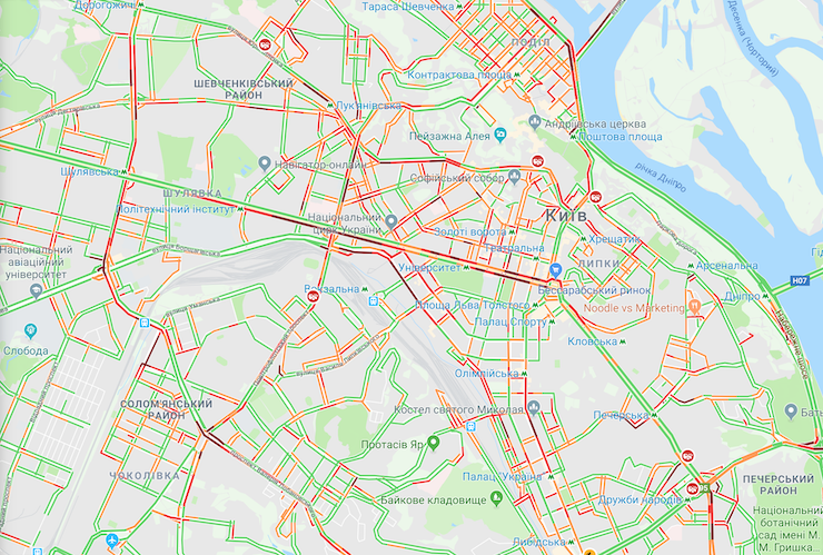 Станом на 11:00 центр Києва потерпає від заторів.