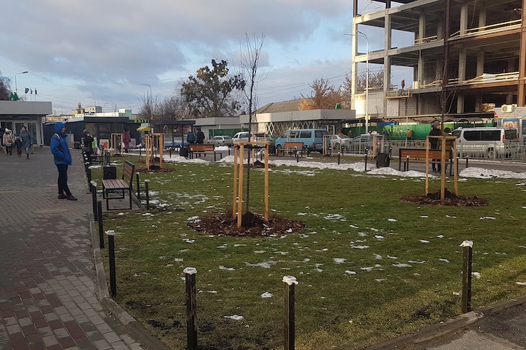 У сквері біля метро «Тараса Шевченка» газони огородили чорними парканами