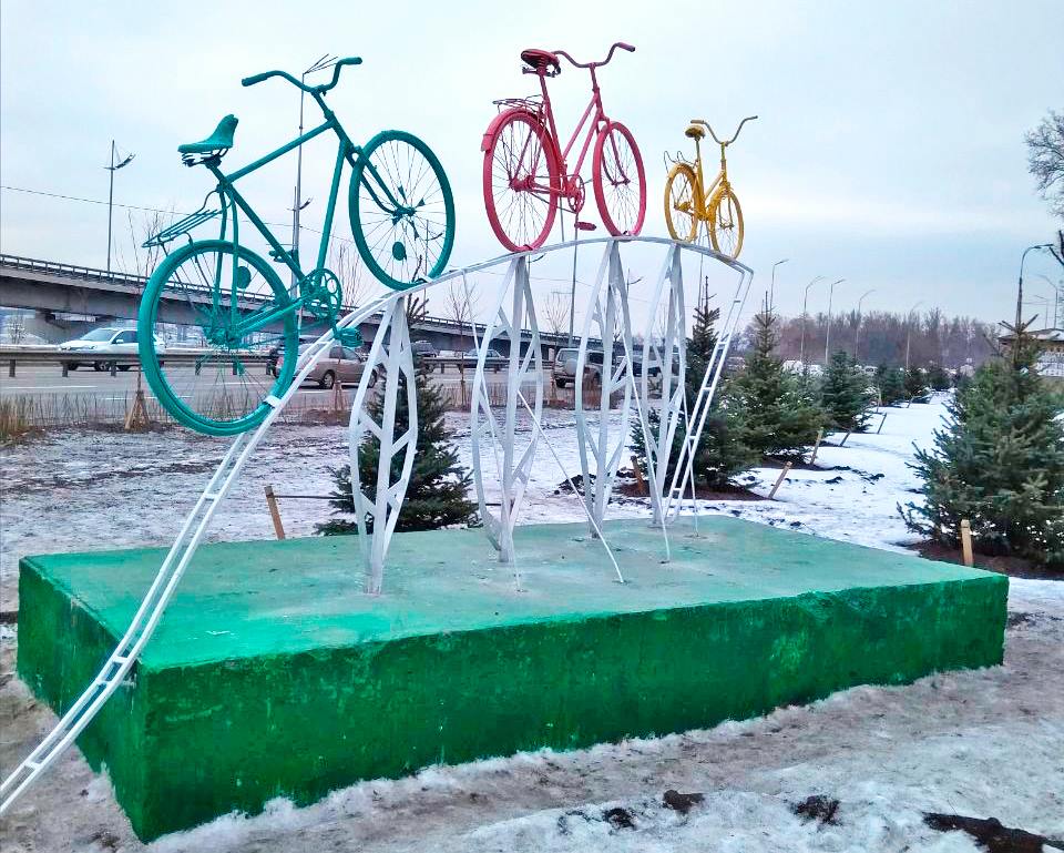 Сьомого грудня комунальне підприємство по утриманню зелених насаджень Печерського району встановило на розі Паркової дороги та Набережного шосе інсталяцію «Велородина». Її створено за ініціативи мешканців Печерського району, стверджують автори.