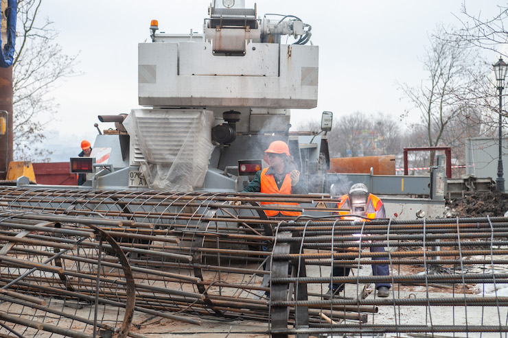 На Володимирській гірці будівельники розпочали зведення пішохідно-велосипедного моста, повідомляє прес-служба КМДА.