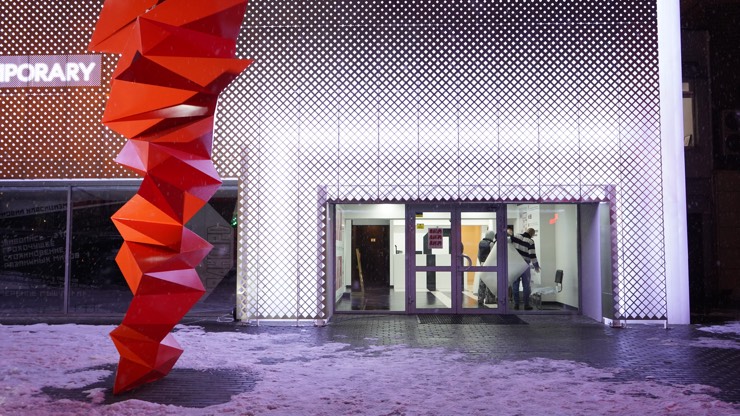 Архітектори переробили оболонку будівлі. Спершу фасад закрили тлом із пофарбованого в біле металу. Ідея полягала в тому, аби спрямувати джерело світла на тло, а не на людину. На деякій відстані змонтували перфоровані панелі з цинкованої сталі.