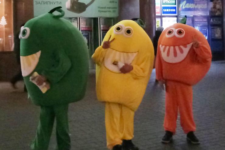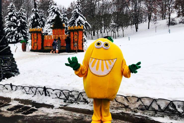 Одночасно люди в костюмах гігантських цитрусів з’явилися у метро Києва. Їх можна буде зустріти до 13 січня, доки працюватиме виставка. Деяким пасажирам гігантські цитруси дарують «цінні призи» – брошури з правилами поведінки в метро та знижки на фестиваль. До слова, вхід на виставку коштує 100 гривень, для дітей – 75 гривень.