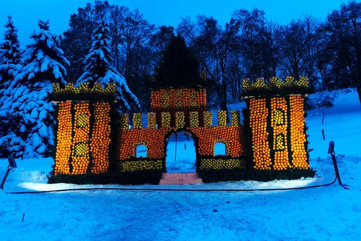 Із цитрусових спорудили будинки Гаррі Поттера, Рапунцель, Аладіна, Робін Гуда, графа Дракули і тамплієрів, а також арки і ялинки. Загалом для інсталяцій використали понад 120 тон фруктів.