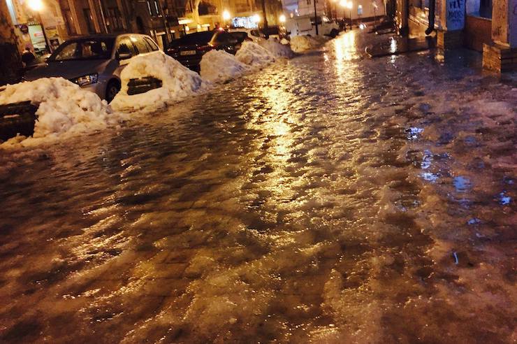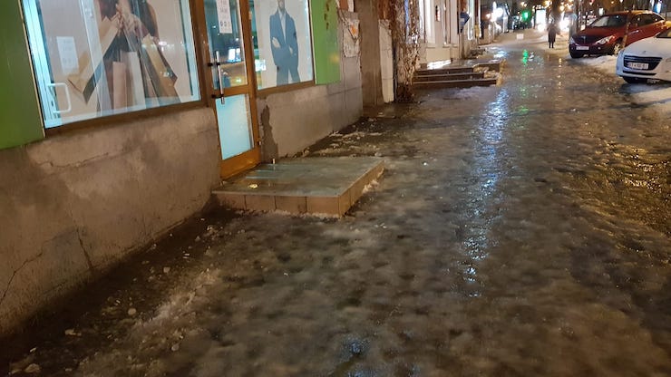 Тим часом кияни обурені станом тротуарів у Києві. Опади та температурні стрибки перетворили дороги на ковзанку.