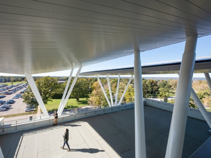 Щоб забезпечити будівлю електроенергією, над пласким дахом центру було зведено дві надбудови з двома тисячами сонячних панелей. Ці додаткові об’єкти з панелями відкидають тінь та захищають відкриті тераси.