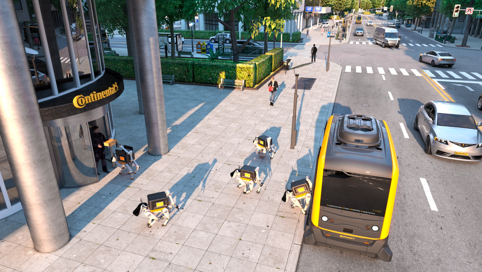Німецька компанія Continental, яка спеціалізується на виробництві автошин та інших компонентів для автівок, представила на міжнародній технологічний виставці CES інноваційний спосіб доставки замовлень самокерованим автомобілем: для доставки до дверей замовника в певному районі автівка випускатиме не кур’єрів-людей, а чотириногих кур’єрів-роботів. Про презентацію розробки повідомляє TechCrunch.