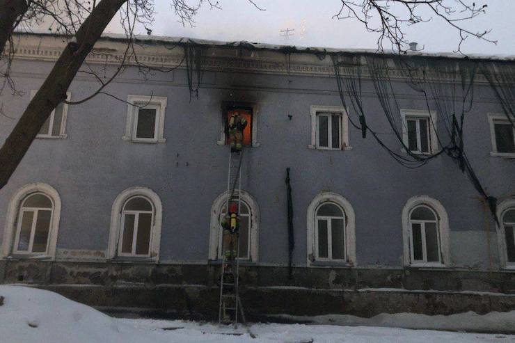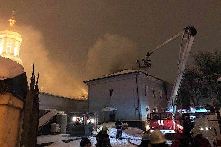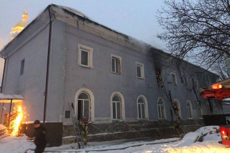 На території Києво-Печерської Лаври увечері 14 січня горіла двоповерхова будівля, зведена на початку ХХ століття.