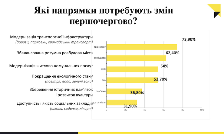 Згідно з результатами, було складено рейтинг найбільше незадовільних аспектів життя у місті: