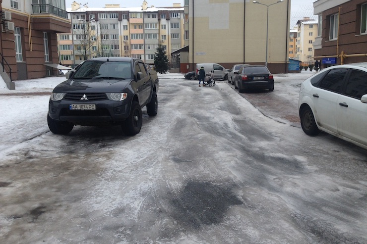 Цієї зими кияни скаржаться на ожеледицю, нарікаючи, що комунальники не обробляють і не розчищають слизькі вулиці. 25 грудня на Борщагівці загинув чоловік – послизнувся на тротуарі та дістав смертельну травму голови.