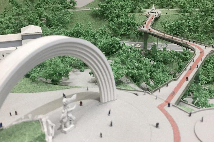 Пішохідно-велосипедний мостовий перехід між Володимирською гіркою та Аркою Дружби народів обійдеться дорожче, ніж заплановані 260 мільйони гривень. Про це повідомив на прес-брифінгу заступник голови КМДА Олександр Спасибко.