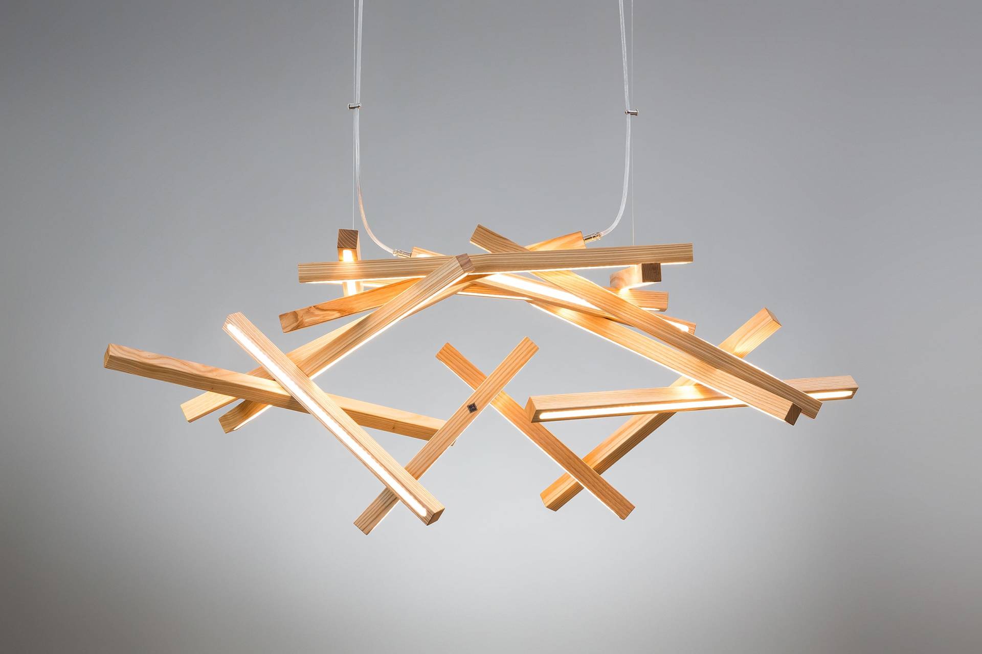 Від студії «Next Level Lighting» на виставці можна було побачити колекцію підвісних дерев’яних LED-світильників.