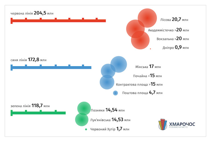 Найбільш і найменш завантажені станції метро Києва: інфографіка