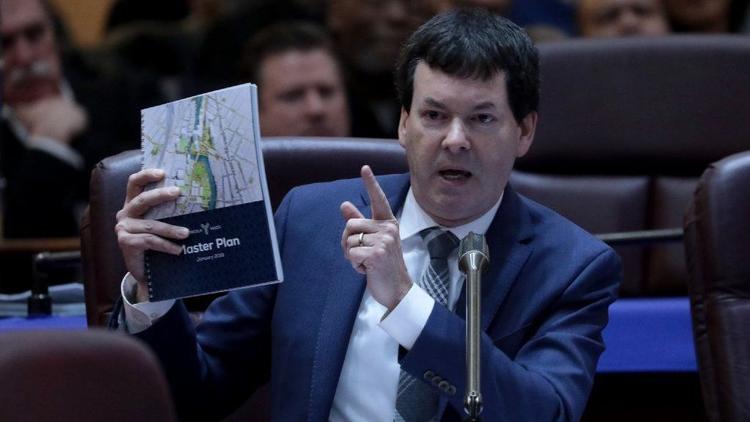 Олдермен Брайан Хопкінз захищає проект під час слухань. Фото: Chicago Tribune