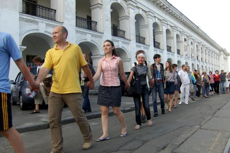 Учасники протестів проти перетворення Гостиного двору на торговельно-офісний центр. Фото: Віктор Крук / facebook.com/HostynnyiDvir