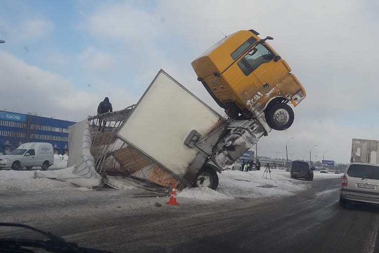 Аварія з фурою на Броварській окружній сталася наприкінці січня через ожеледь. Фото: Полина Джулай / Facebook