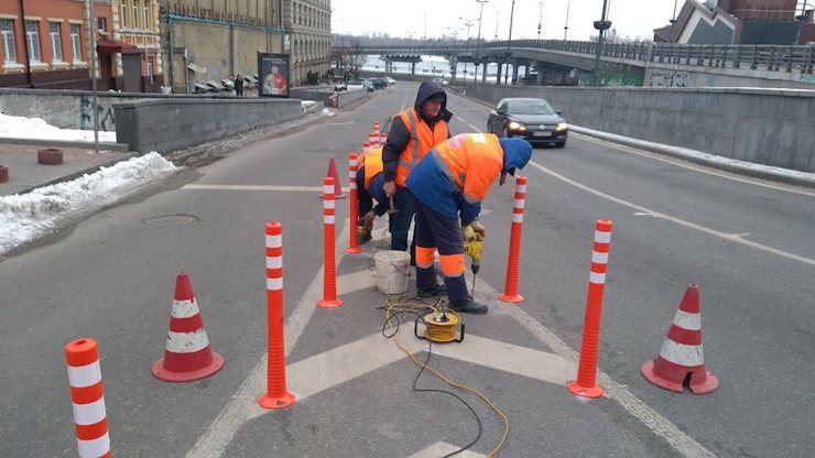 Вранці дев’ятого лютого комунальники встановили обмежувальні стовпчики на острівці безпеки на перехресті вулиць Боричів Тік, Сагайдачного та Володимирського узвозу, повідомляє Центр організації дорожнього руху.