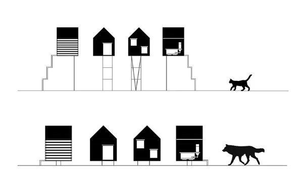 Бюро natura futura arquitectura проектує будинки для вуличних котів та собак у латиноамериканському містечку Бабахойо. Designboom повідомляє, що чверть тварин у Латинській Америці живуть на вулицях у голоді або піддаються фізичним тортурам.